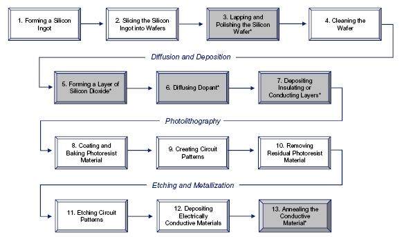 Semiconductor Industry. Semiconductors control and amplify electrical signals and are used in a broad range of electronic products, including: consumer electronic products, computers, wireless telecommunication devices, communications equipment, automotive electronic products, major home appliances, industrial automation and control systems, robotics, aircraft, space vehicles, automatic controls and high-speed switches for broadband fiber optic telecommunication networks. Semiconductors, or semiconductor chips, solar cells and optical components are manufactured primarily on a silicon wafer and are part of the circuitry or electronic components of many of the products listed above.
